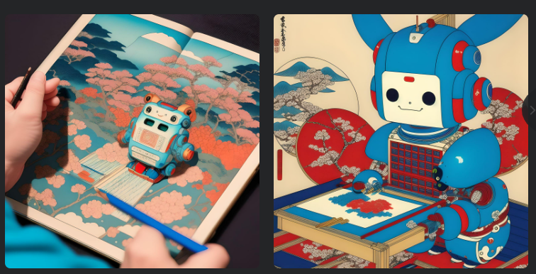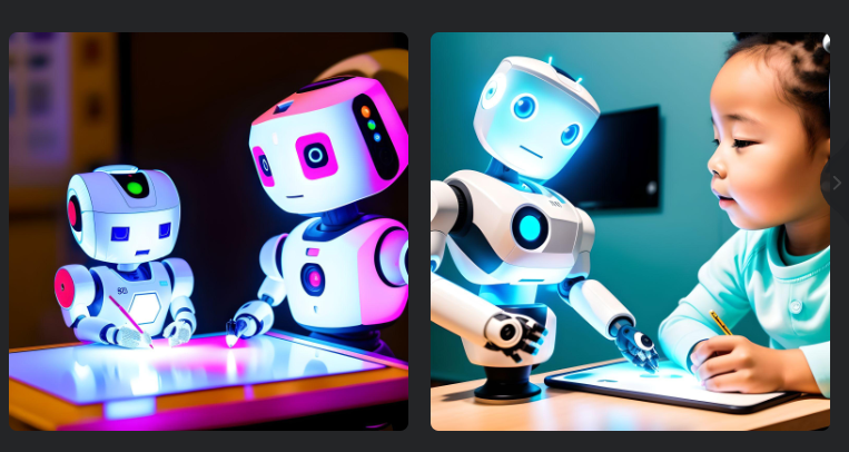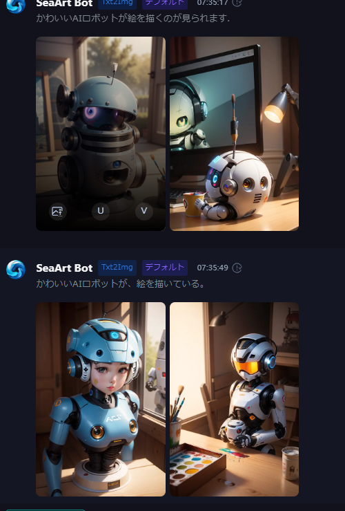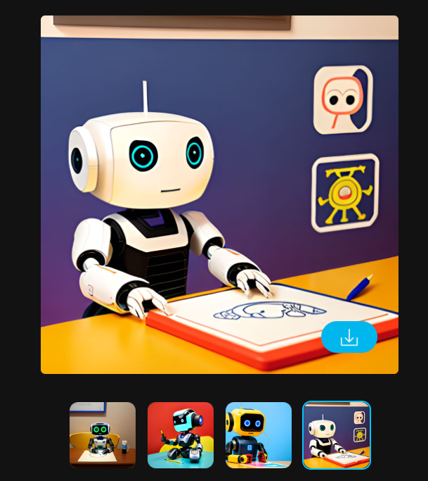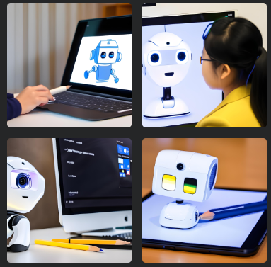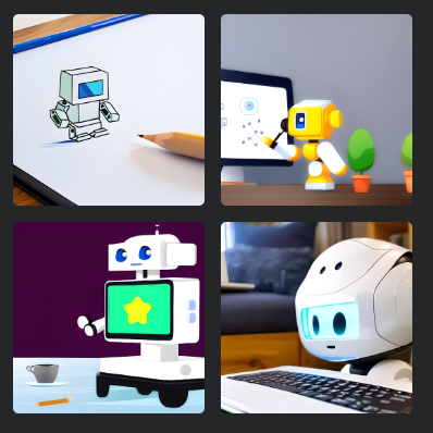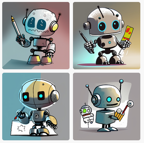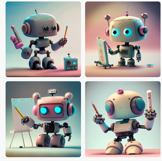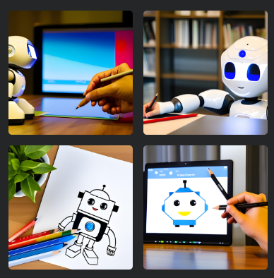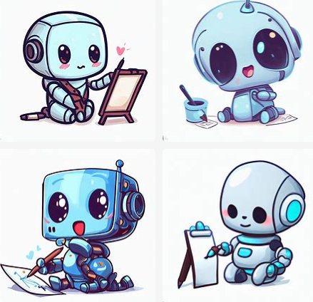 かわいいAIロボットが、絵を描いている。