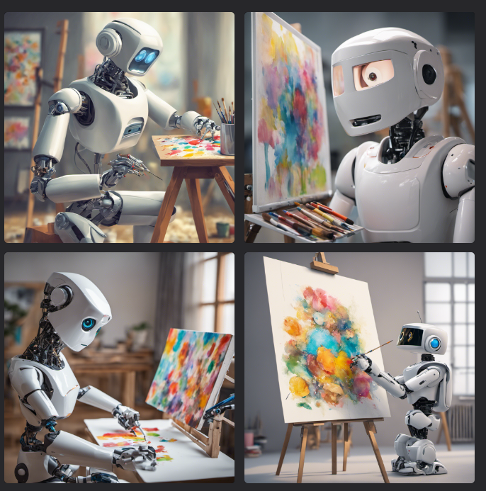 A cute AI robot is seen painting a picture.