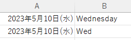 | 表示形式コード | 曜日の表示形式 |