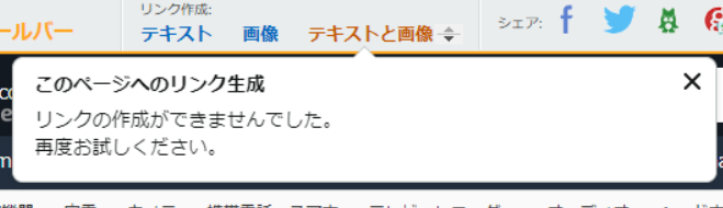 Amazonアソシエイトツールバーのリンク生成ができない”リンクの作成ができませんでした。再度お試しください”って出ちゃう!?対処方法