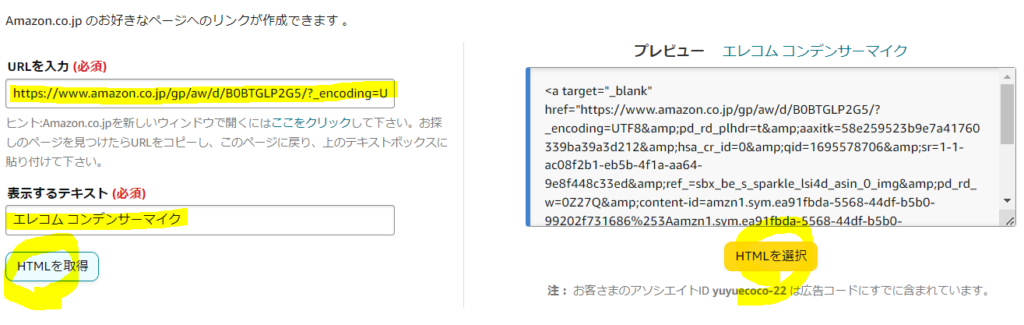 Amazonアソシエイトでテキストリンクを選択