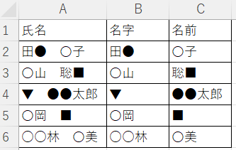 Excel 苗字と名前に分けて出す! 氏名を姓と名前に分割する方法 超簡単 コピペでOK! Excel X Facebook はてブ LINE コピー 2022.10.202024.03.13 このように、名字と氏名の間に全角のスペースが入っていることが前提になります。 目次 名字を抽出→B2名前を抽出→C2 スポンサー 名字を抽出→B2 =LEFT(A2,FIND(" ",A2,1)-1) –sponser– 名前を抽出→C2 =RIGHT(A2,LEN(A2)-FIND(" ",A2,1)) 以上です。