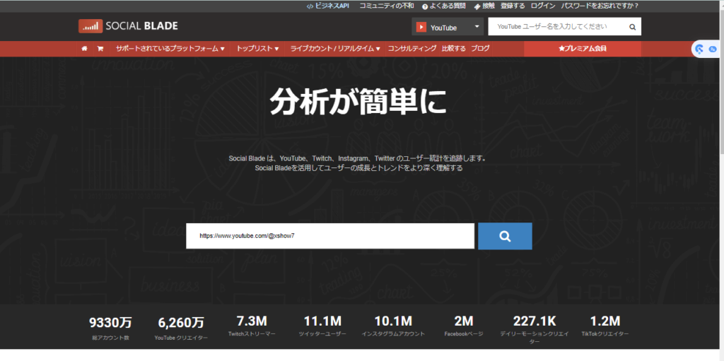 Social Blade は、YouTube、Twitch、Instagram、Twitter のユーザー統計を追跡します。と書いてあります。