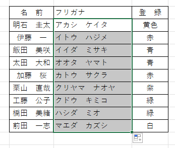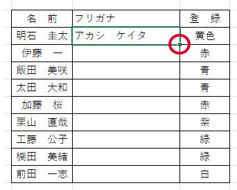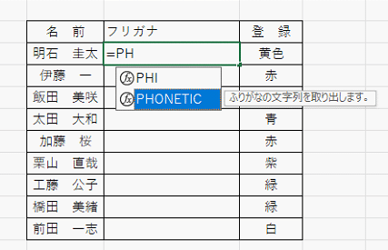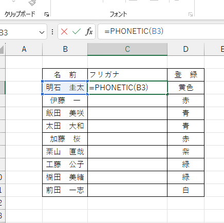 ➊基本のフリガナのつけ方は フリガナの列の先頭行に