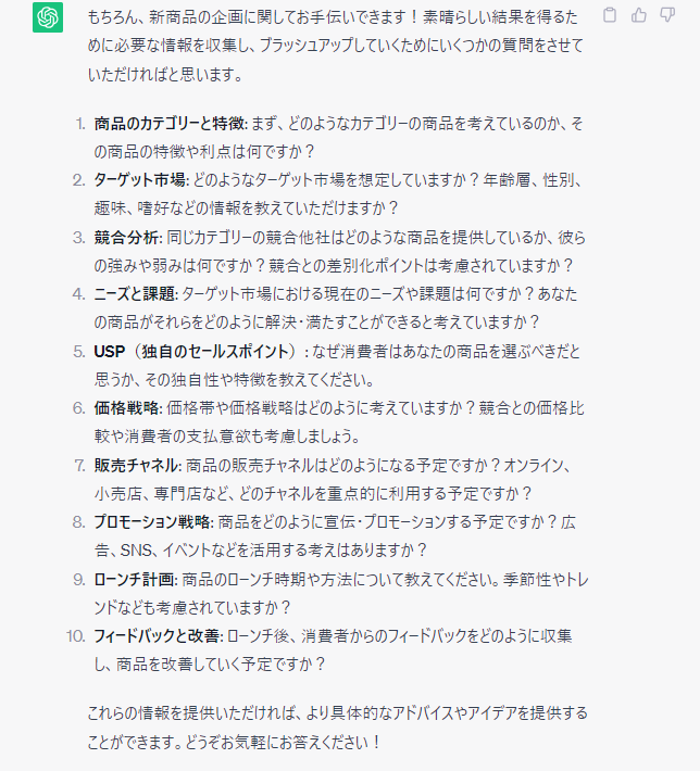 私たちのチームのために企画をしてください。最高の結果を出すために、もっとたくさんの情報が必要です。ブラッシュアップもしたいのでたくさんの質問をしてください。