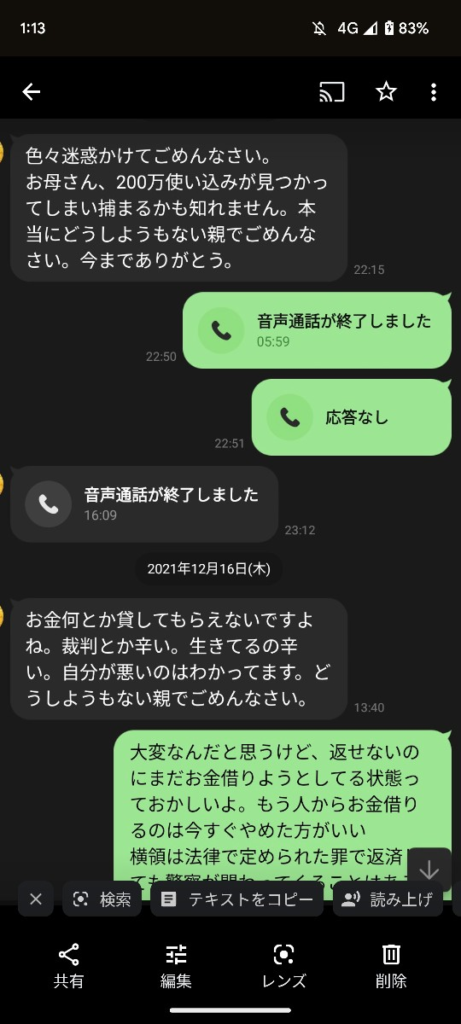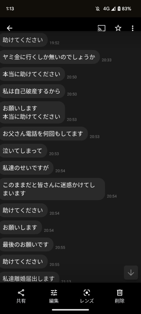 ラインのやり取りだけだとなにが起こってるのかわからんわ